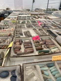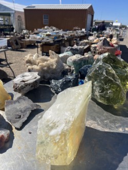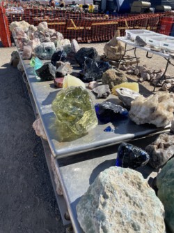 And when a break is needed from the desert, take the Jeep into Quartzsite to see the rocks at the gem stone outdoor market, a venue that, along with Quartzsite itself, left Paintin’ Peggie faintly amused.