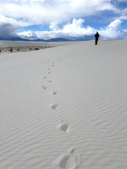 Interesting story how the white sand came to be, the grains are actually weathered gypsum crystals that form due to the combined effects of ancient gypsum deposits and the climate since the last ice age (only 10,000 years ago if you can believe it). CrossCountry Bob could go on (he finds geology fascinating) but he will stop right here as he senses your eyes drooping and your non-geological mind wandering. How about this instead…