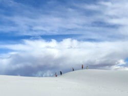 Hiking the white sand dunes was mandatory (for CrossCountry Bob).  To be prepared, a point system was invented by none other than CrossCountry Bob.  10 points for the right hiking shoes, 10 points for a charged iphone, 20 points for enough water and 100 points for sunglasses (think of that high elevation New Mexico sun reflecting off pure white sand).  So how many points did CrossCountry Bob and Paintin’ Peggie score?