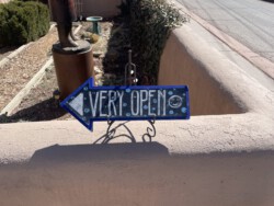Finally (oh, my aching feet), it was food time. A grateful CrossCountry Bob settled into a cafe chair, sipped a local cerveza and confirmed that the food is Santa Fe is an excellent companion to the art scene.  The green chili of New Mexico is best of show. There would be pictures of the food but the famished duo demolished their plates before the thought of food pixs entered their minds.